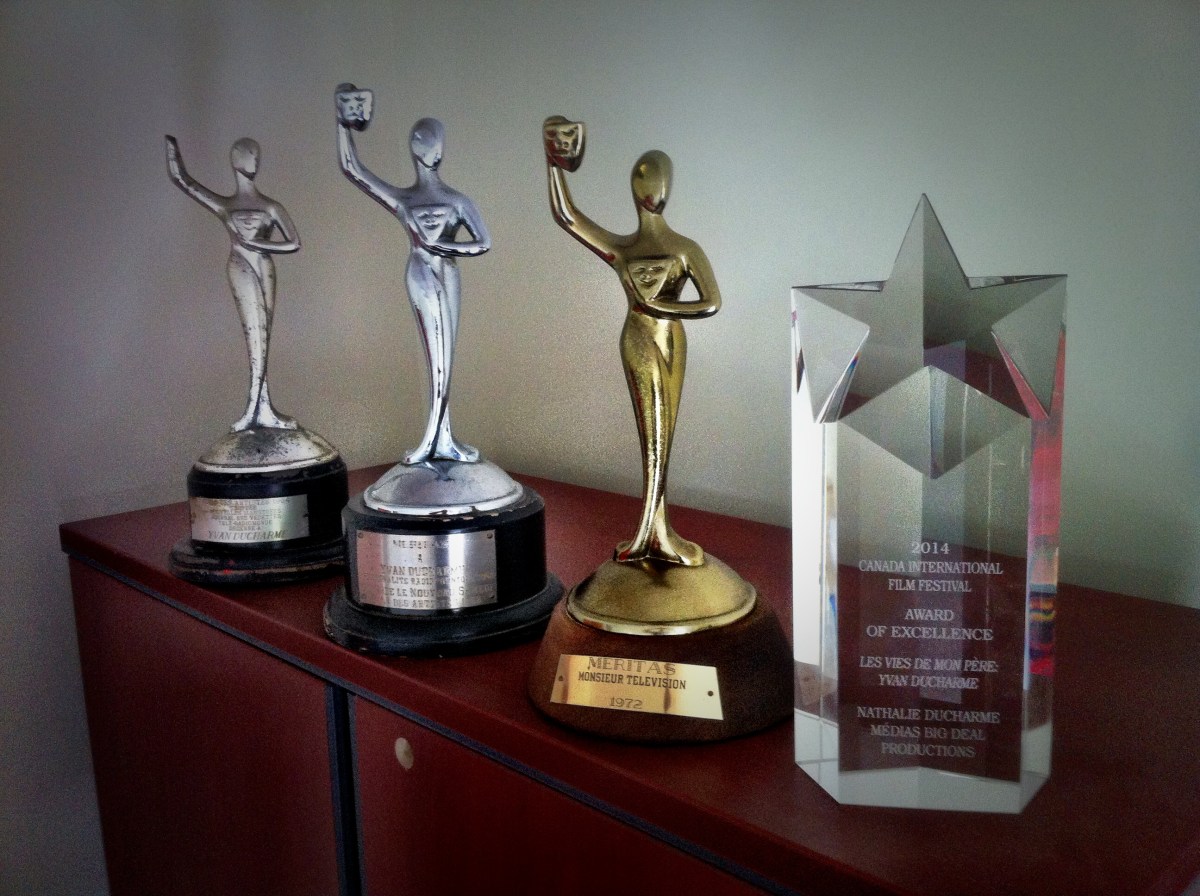 Le trophée de AWARD OF EXCELLENCE remporté au CANADA INTERNATIONAL FILM FESTIVAL de Vancouver pour le documentaire LES VIES DE MON PÈRE: YVAN DUCHARME, accompagne dorénavant quelques trophées remportés par Yvan Ducharme au courant de sa carrière artistique.
